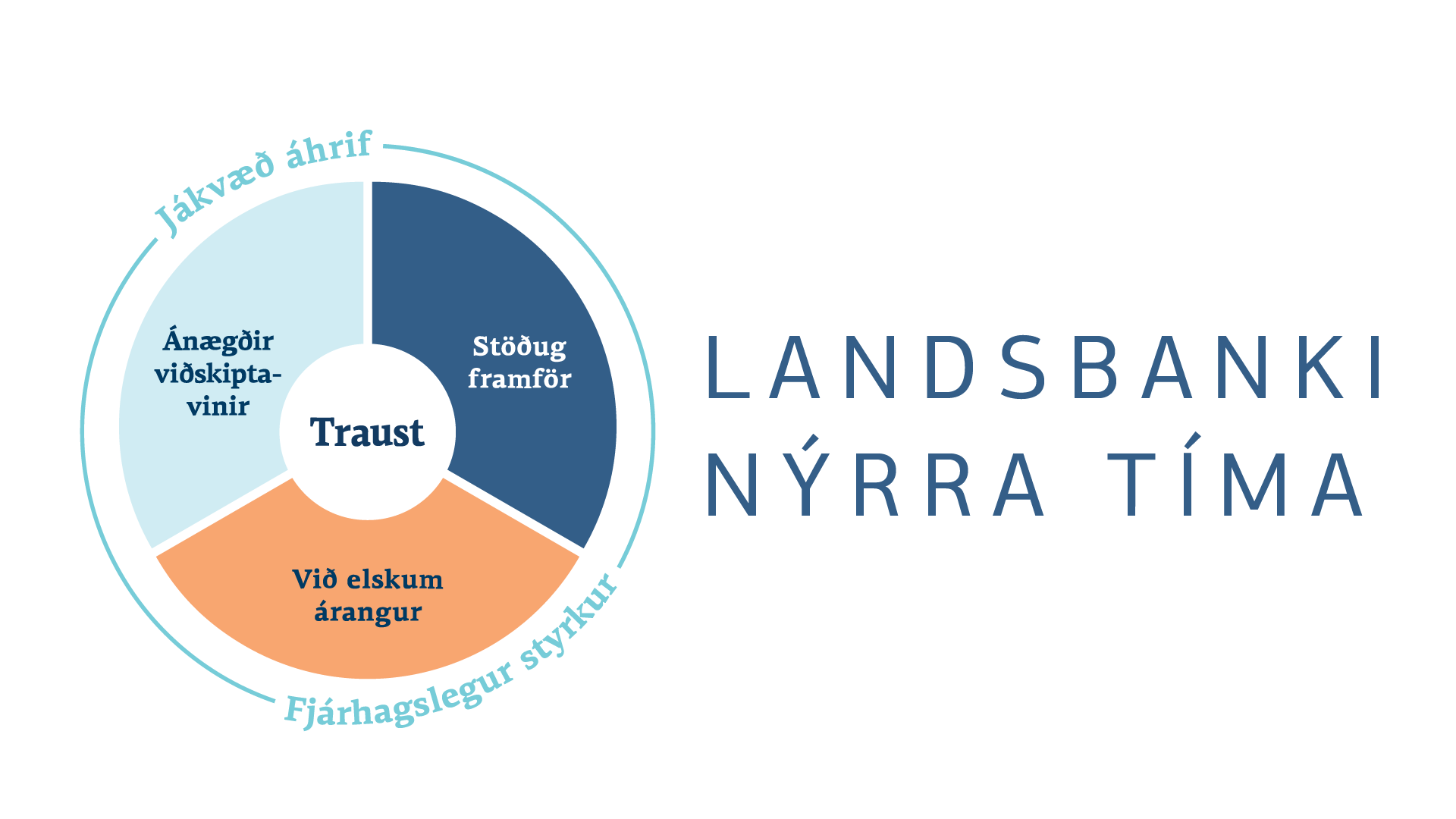 Gildi Landsbankans er traust. Traust er lykilþáttur í allri starfsemi bankans hvort sem horft er til samskipta við viðskiptavini, birgja, samstarfsfólk eða átt er við rekstur bankans og almenna starfsemi. Viðskiptavinir geta treyst því að við séum til staðar og að rekstur bankans sé í öruggum höndum.